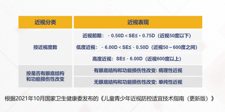 近視是指5米遠(yuǎn)以外的平行光線入射調(diào)節(jié)放松的眼球后,通過眼球光學(xué)系統(tǒng),聚焦在視網(wǎng)膜的前方,在視網(wǎng)膜上形成一個(gè)模糊的像,其主要原因是眼軸過長,或者眼的屈光力過大,或者眼軸與眼的屈光力等其它光學(xué)參數(shù)失去匹配而造成。2021年10月,國家衛(wèi)生健康委發(fā)布的《兒童青少年近視防控適宜技術(shù)指南(更新版)》將近視分為近視前期、低度近視和高度近視。若近視度數(shù)高,同時(shí)伴有眼底結(jié)構(gòu)和功能損傷性改變,則稱為病理性近視。