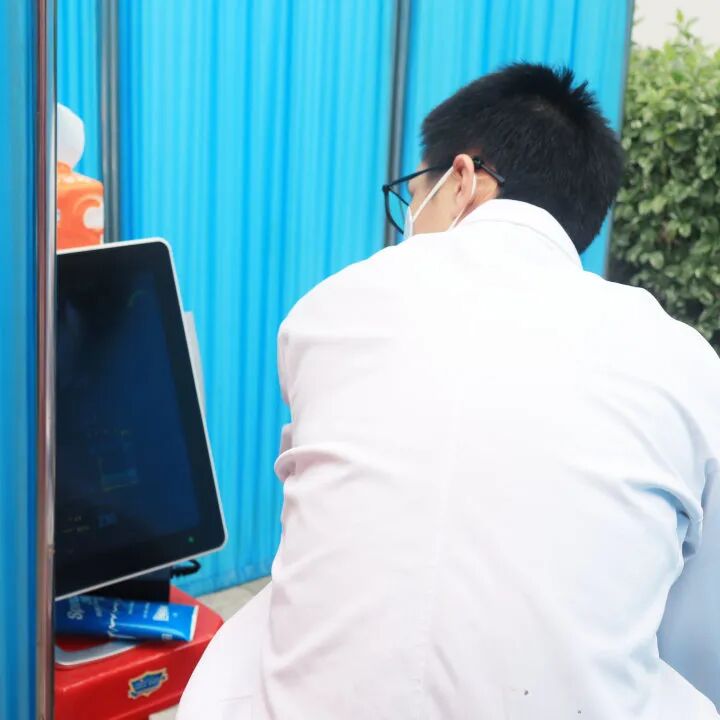門診主任、主治醫(yī)師蔡永旺為居民提供肝臟彈性硬度檢測